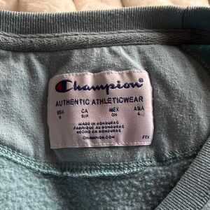 Soft light blue sweatshirt with iconic Champion logo. Ideal for everyday comfort.