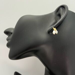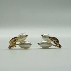 These elegant earrings feature lustrous pearls paired with gold leaf accents, perfect for adding a touch of sophistication to any outfit.