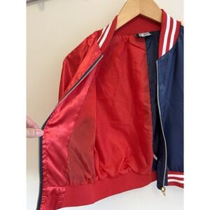 Suicide Squad Jacket Womens Small Red Blue Harley Quinn Joker Satin Bomber Coat