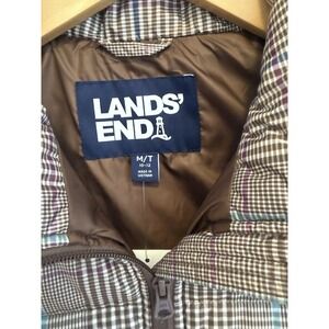 Lands End Women's Neutral Plaid Max 600 Down Puffer Vest Size Medium Tall