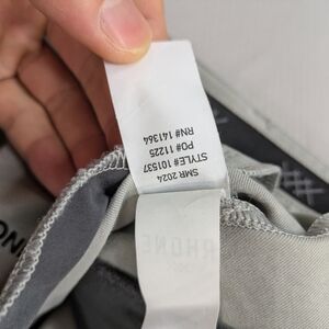 Elegant light gray chinos by RHONE. Perfect for casual or formal wear. Comfortable and stylish.