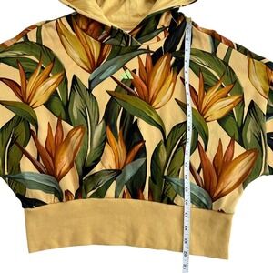 tropical print, bird of paradise, cropped hoodie, floral print, athletic wear, loungewear, streetwear, summer, resort wear, vibrant, bold print, activewear, maximalist