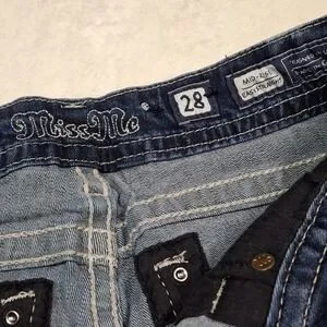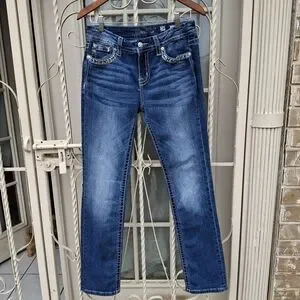 Miss Me Easy Straight Embellished Mid-Rise Blue Jeans Women Size 28