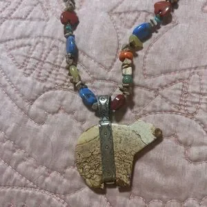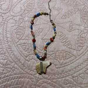 This stunning necklace features a multicolor beaded design with a unique bear pendant. A beautiful statement piece! 🐻