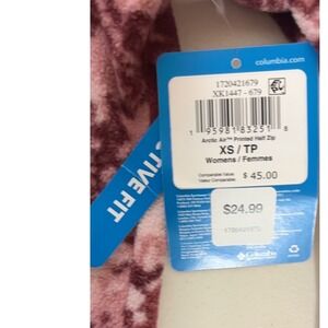 Columbia Womens XS Arctic Air Printed Half Zip Fleece Pullover Burgundy Pink NWT