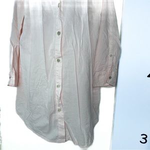 Victoria’s Secret Light Pink Button-down Pajama Nightgown Large. 55% cotton, 45% viscose, button-down front. 22% across chest, 18" sleeve, 36" long, no pockets. Used, pre-owned in good condition.