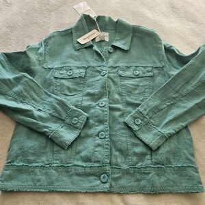 Tommy Bahama Linen Raw Edge Long Sleeve Button Front Jacket: Azul Marine (Teal)