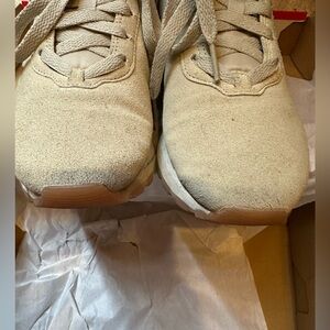 Wore these once for an Easter egg hunt at work and they got very dirty, but they are actually like new other than them being dirty. Soles have no real wear on them. These sneakers feature a holographic swoosh. Vibrant colorful sole adds flair.