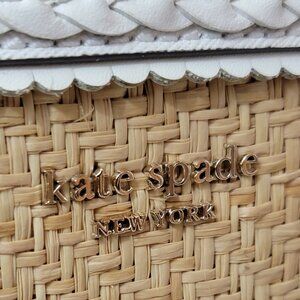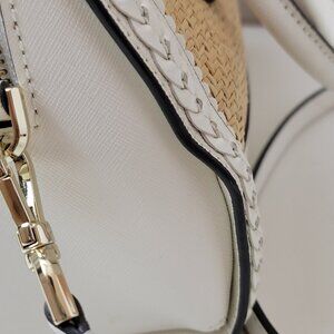 Kate Spade ♠️ White Leather & Woven Straw Dome Satchel Crossbody Gold Hardware