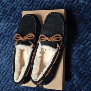 Cozy Dakota UGG slippers in black suede with brown leather lace up. Women's size 8. Brand new in box; never worn.
