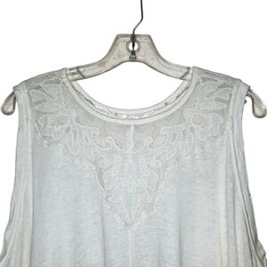 FREE PEOPLE Swing Top Ivory Knit Lace Linen Blend Layering Tank Boho Large 10