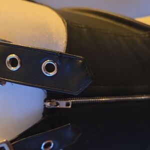 Faux leather buckle vest by Dolls Kill. This top has fanged hemline, two buckles across the front and straps across the bust. Such a great piece but its too small on me now so it needs a new home!