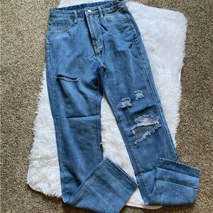 SHEIN Distressed Hi Rise Baggy Jeans Long Size Small