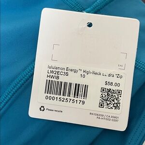 Lululemon NWT Energy High Neck LL sports Bra Zipper Blue Size 10 ( Stock photos For Fit Reference Only)