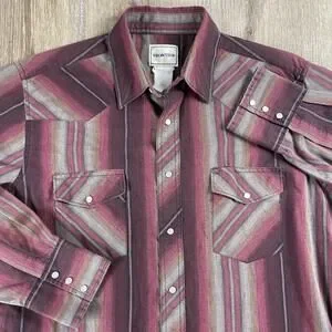 Frontier Pearl Snap Western Shirt Men's *XL* Button Up Shirt Horizontal Stripes