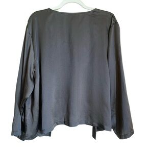 Excellent condition. 100% hammered silk (subtle texture) jacket in dark grey/brown. Open front style, signature Eileen Fisher boxy fit. Really pretty in person...the pics don't do it justice! Perfect for evening. Looks great over a dress. Adds instant polish to any outfit, dressy or business casual. High quality, classic piece.