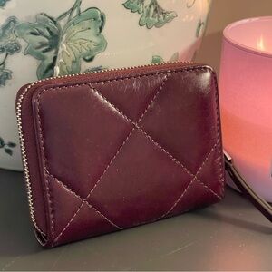 Tory Burch Small Kira Diamond Quilt Burgundy Leather Zip-Around Wallet
