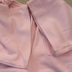 Comfortable light pink cargo sweatpants with pockets. Oversized fit great