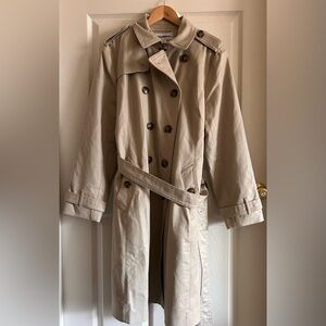 Liz Claiborne Womens Double Breasted Khaki Belted Classic Trench Coat Size XL