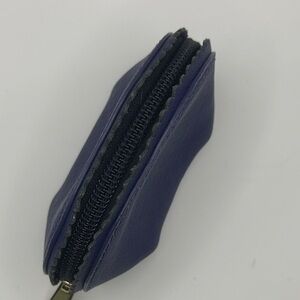 Scalloped blue coin pouch by Henri Bendel. Features a gold zipper detail.
