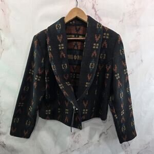 Vintage Southwestern Jacket Women Large Concho Blanket Aztec Geo Cowichan Woven