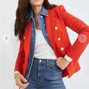 Veronica Beard Miller Dickey Jacket Blazer Flame Red with Gold Buttons