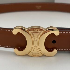 Celine Triomphe Tan Leather Belt with Gold Accent
