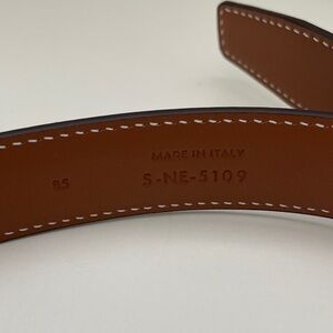 Celine leather belt in tan. Features a striking gold accent. Perfect for adding sophistication. No box