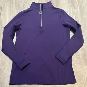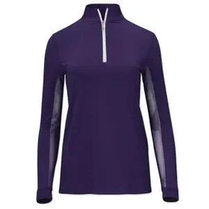 The Tailored Sportsman 1/4 Zip Sun Shirt is a versatile activewear top designed for women who enjoy riding and other outdoor activities. Made from Icefil fabric, this long sleeve shirt features a mock neck with a zip closure for easy ventilation. With features like UV protection, moisture-wicking, and breathability, it is suitable for all seasons and offers both style and functionality. The purple color adds a pop of color to your outfit, while the comfortable fit and stretch material make it perfect for active lifestyles. Perfect for equestrian enthusiasts looking for quality riding apparel.