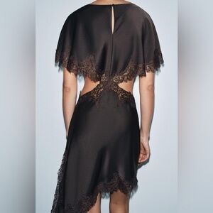 Zara NWT ZW Collection Brown Satin & Lace Cut Out Asymmetric Midi Dress (Large)