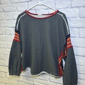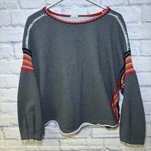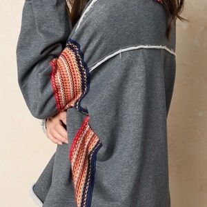 Natural Life Knit Trim Oversized Boho Sweatshirt Womens S/M Gray Raw Edge Lounge