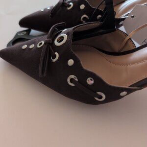 Brown Grommet Style Pointy Toe Mules Women’s Size 6 High Heels New Never Worn