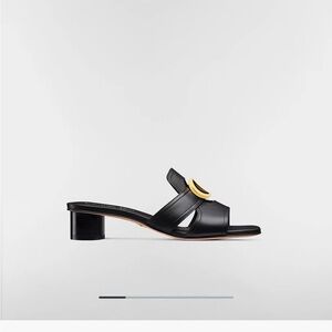 Chic Dior sandals with bold gold details. Perfect for any stylish outing.