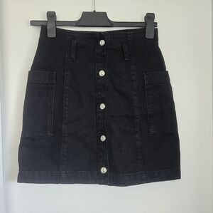 The perfect denim mini skirt with functional pockets, belt loops and silver button detail