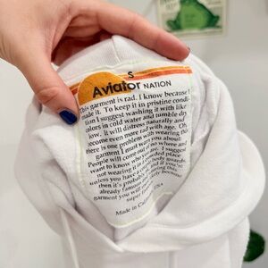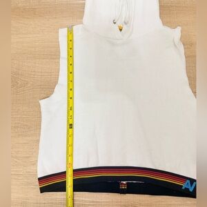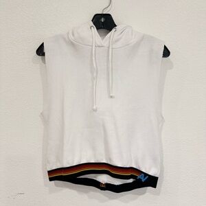 Aviator Nation Logo Stripe Sleeveless Crop Pullover White Hoodie Size Small