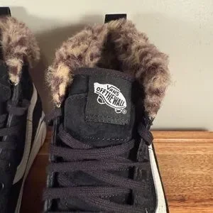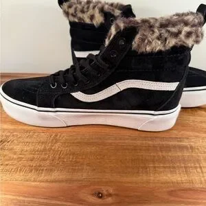 Vans SK8-Hi Platform Black Suede Leopard Fur Sneaker Size 8.5