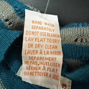 Cute Tulle from Anthropologie cap sleeve light sweater. Green and tan wavy stripes, ribbed band at hem, sleeves and neckline. Decorative buttons on both sides. NWT and included extra button! Made of ramie and rayon. This would look great with a work outfit or can be worn with jeans or shorts for a casual look!