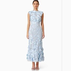 Elevate your style with this stunning Fitted Cocktail Midi Dress, designed to make you stand out at any event. Featuring a high neckline adorned with exquisite 3D floral detailing, this dress exudes elegance and sophistication. The sleeveless fitted bodice perfectly contours your silhouette, offering a sleek and flattering fit that highlights your natural curves. Crafted from luxurious 3D floral lace, the dress boasts a rich texture that adds depth and intrigue to its design, making it a true statement piece.