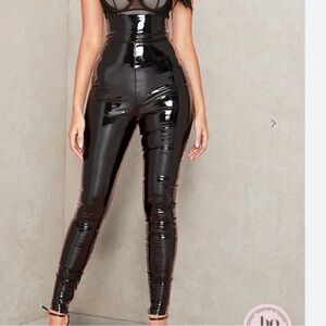 HOUSE OF CB LONDON HARMONY HIGH WAISTED PATRNT VINYL PANTS LARGE