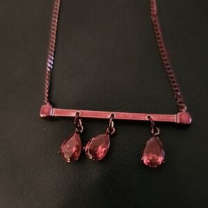 This elegant pink/red teardrop necklace adds a touch of sophistication to any outfit. Perfect for any occasion. Magnetic closure, Magnetic extender.