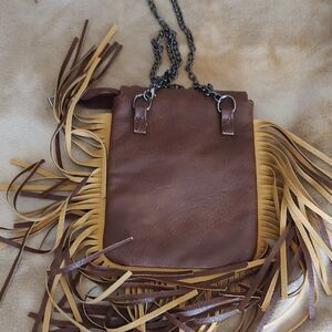 Fringe Crossbody Bag Brown FAUX Leather with Metal La Catrina NWOT