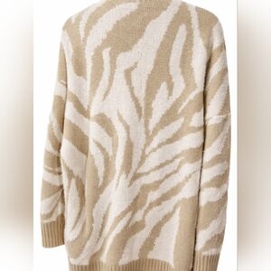 Chic zebra pattern cardigan. Soft beige and cream tones. Ideal for layering.