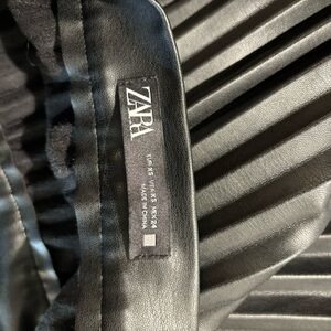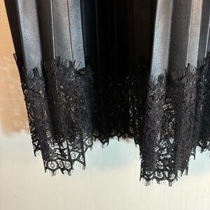 ZARA Sz XS Midi Skirt Liquid Leather Look Vegan Pleated Lace Trimmed In Black. Edgy and soft. Elevated punk. Witchy core. Trendy yet classic.