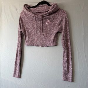 Womens Long Sleeve Hooded Crop Tee Size S Plum Fitness Gym Workout Yoga CrossFit