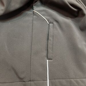 Full front zip, two side zip pockets, one chest zip pocket, adjustable cuffs, fleece lined, 100% polyester