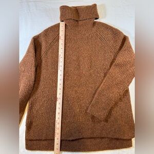 Stay warm and stylish with this cozy brown turtleneck sweater. Perfect for any casual outing.