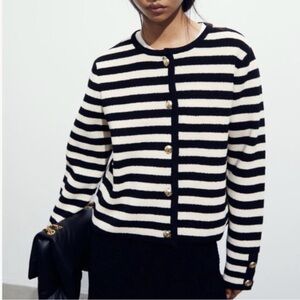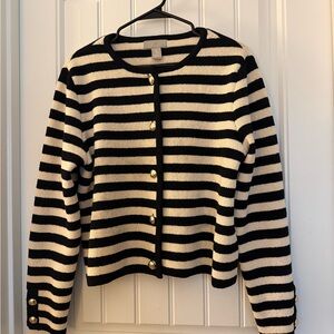 H &M Black and White Striped Cardigan with Gold Buttons