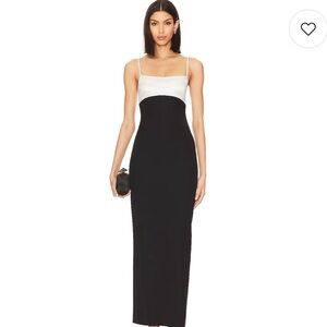 Dazzle at black-tie events with MAJORELLE's Black & White Avori Gown. Featuring a bow detail at the back and taffeta fabric at the bust, it exudes elegance, making it the perfect choice for a glamorous night.