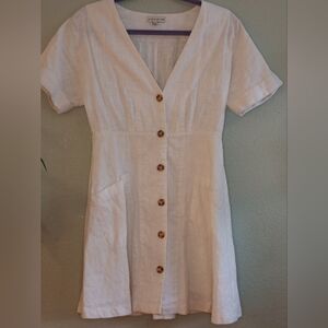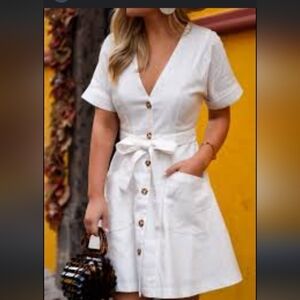 Moon River Classic Preppy Linen Coastal Button Front VNeck A Line Pocketed Dress
