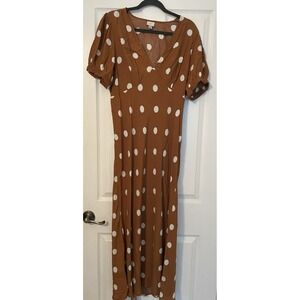 A New Day Women's Maxi Dress Brown Size Large Polka Dots plunge V-Neck Peasant